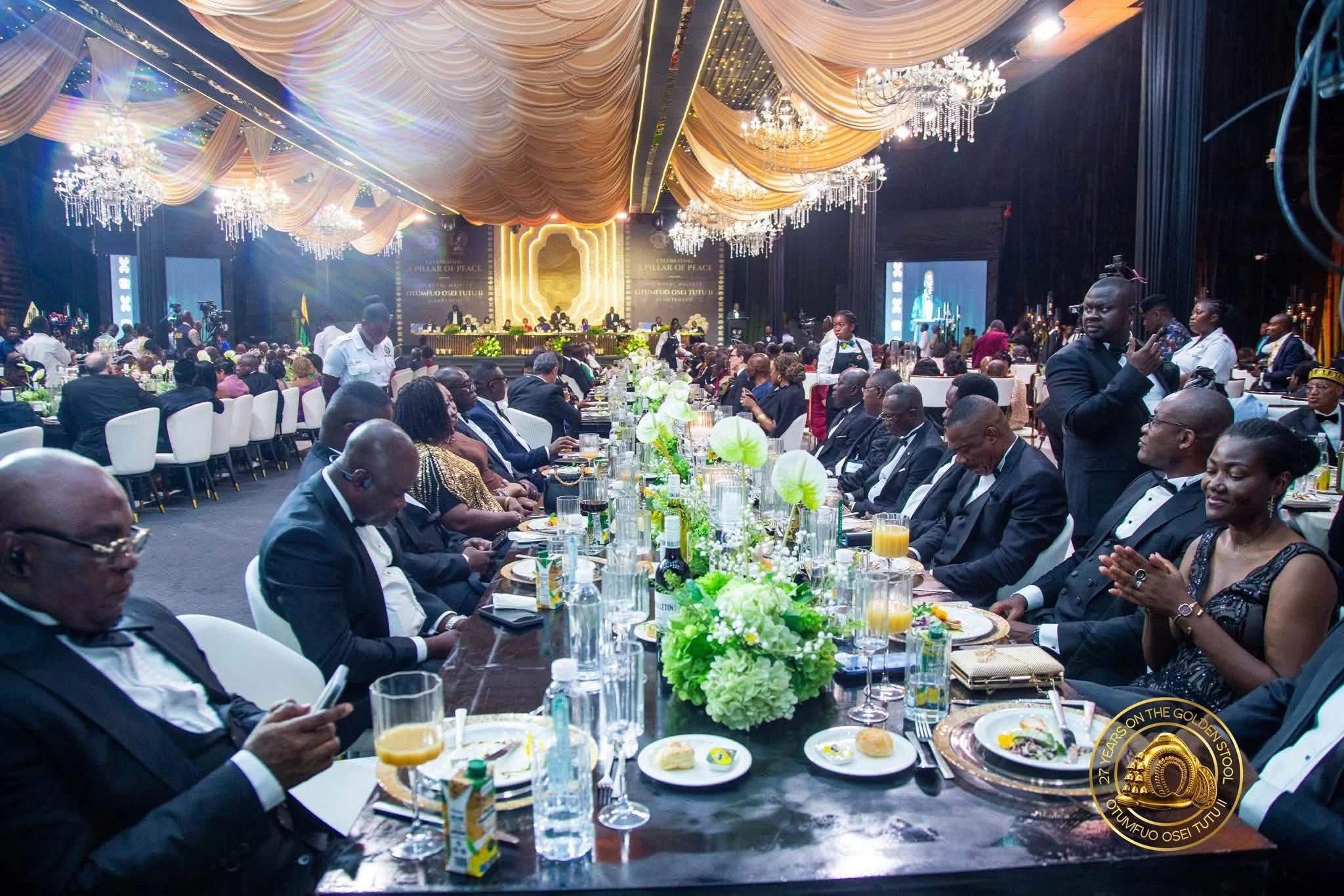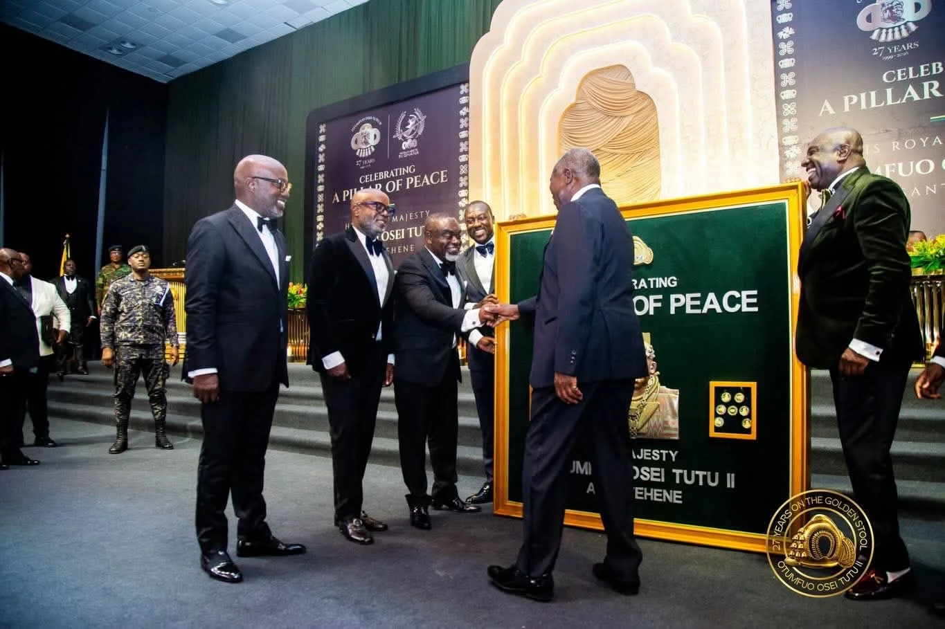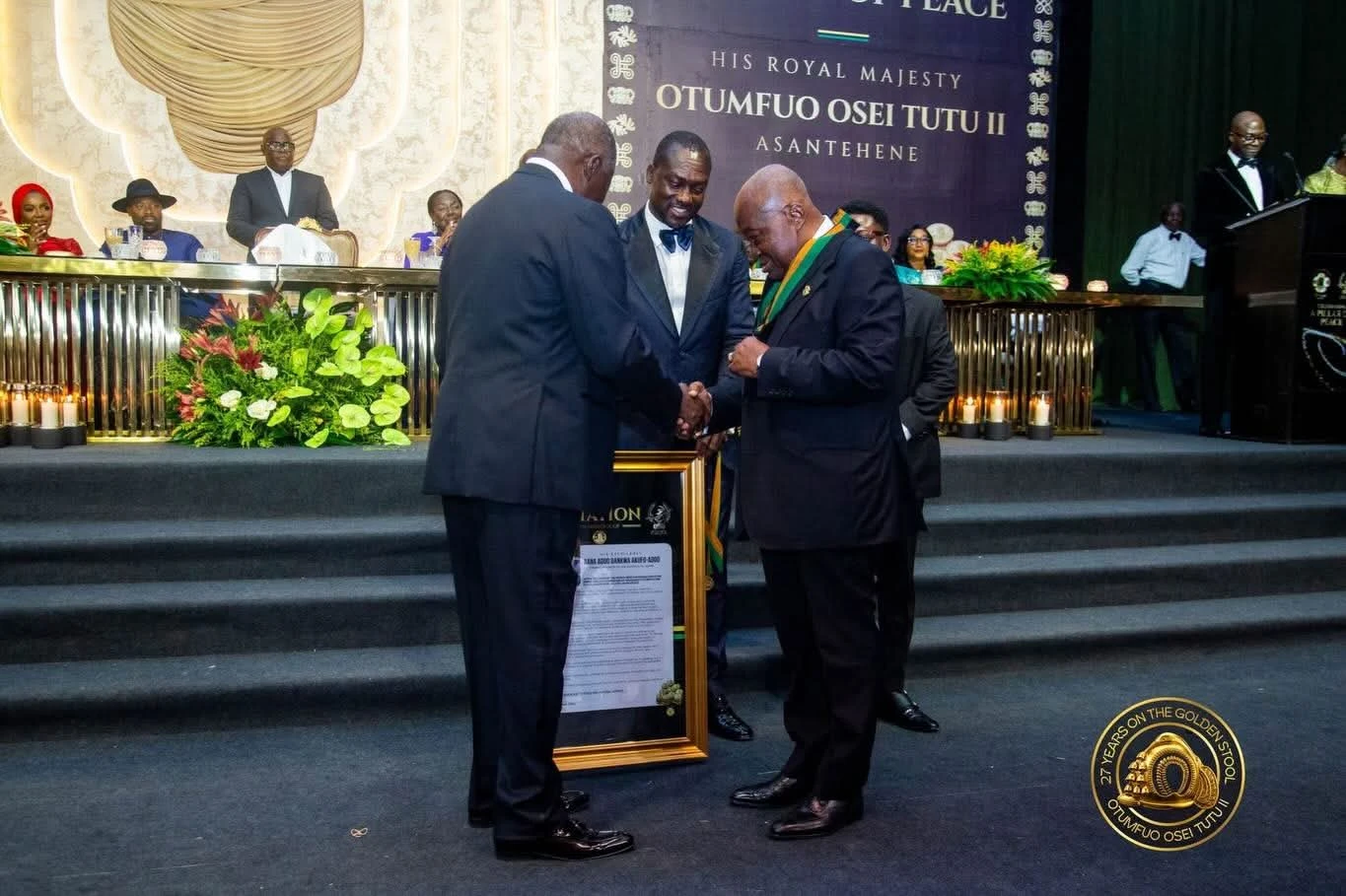 The world converged in Manhyia Palace on Friday, April 24, 2026, as distinguished guests gathered at the Otumfuo Jubilee Hall for the World-Meets-in-Ghana Executive Dinner Ball held in honour of Otumfuo Osei Tutu II. The revered Asantehene was celebrated as a Distinguished Pillar of Peace for his enduring role in promoting stability and unity.